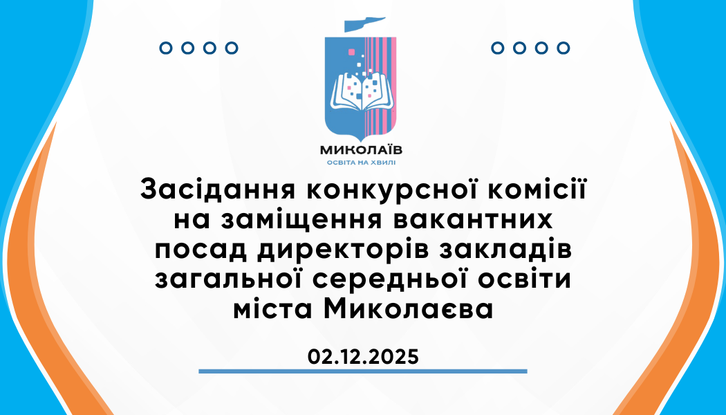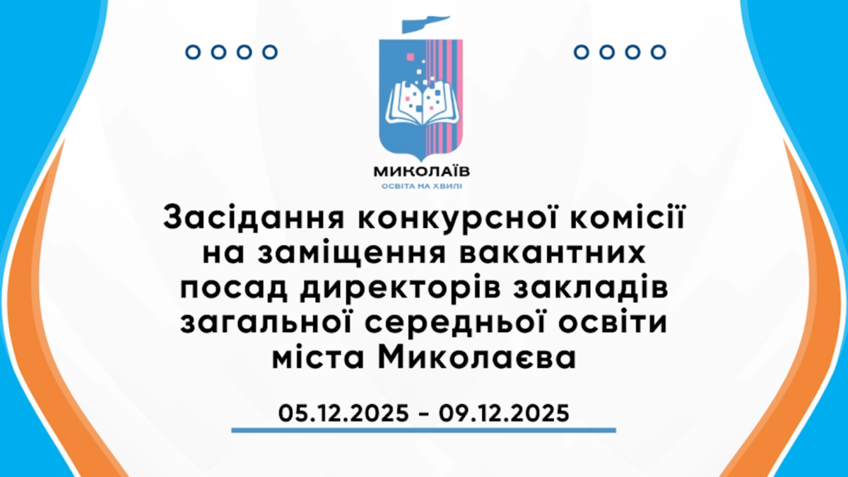 Відеозапис засiдання конкурсної комісії на замiщення вакантних посад директорiв закладiв загальної середньої освiти міста Миколаєва