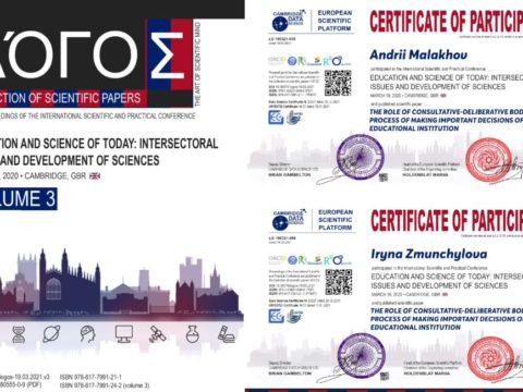 19 березня 2021 року в Cambridge, GBR відбулася Міжнародна науково-практична конференція «EDUCATION AND SCIENCE OF TODAY: INTERSECTORAL ISSUES AND DEVELOPMENT…