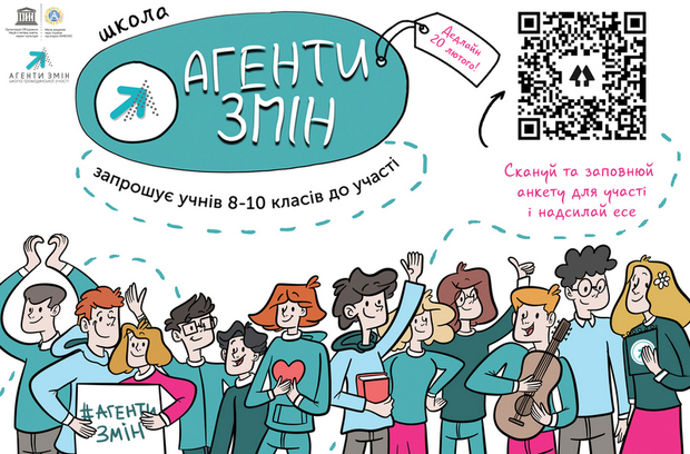 Всеукраїнська школа з громадянської та волонтерської участі й патріотичного виховання «Агенти змін» і «Мала академія наук України» запрошують школярів узяти участь у 9-й Школі «Агенти змін 2021».Участь в освітньому проєкті зможуть узяти 125 учнів 8-х – 10-х класів з усієї України. З допомогою кваліфікованих тренерів школи, менторів і запрошених лекторів підлітки протягом 10 місяців утілюватимуть у життя свою мрію та реалізовуватимуть власний проєкт, спрямований на вдосконалення життя своєї громади в реаліях українського сьогодення.