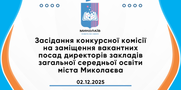 Відеозапис засiдання конкурсної комісії на замiщення вакантних посад директорiв закладiв загальної середньої освiти міста Миколаєва