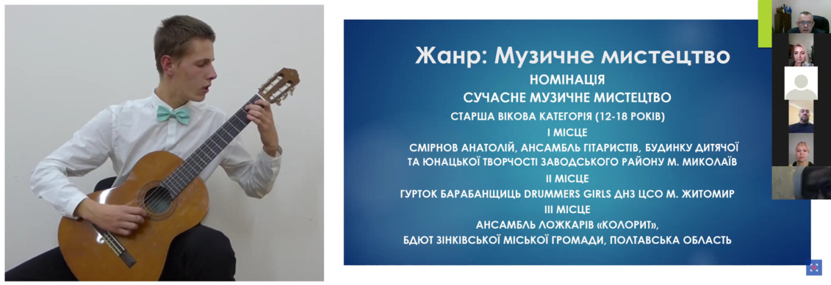 Спортивна (бальна) хореографія: Харченко Єгор та Калошина Софія, Сучасне вокальне мистецтво: Крупський Матвій, Буткалюк Олена, Сучасне музичне мистецтво: Смірнов Анатолій, ансамбль гітаристів «Great sound»