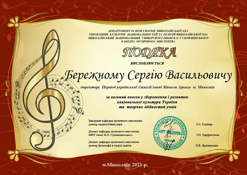 Учениця 5(9)-Б класу Басовська Катерина посіла ІІІ місце в конкурсі вокально-хорового виконавства “Золоті голоси” в рамках Всеукраїнського фестивалю-конкурсу “Мистецька феєрія”. Конкурс проводився кафедрою музичного мистецтва МНУ імені В.О.Сухомлинського.