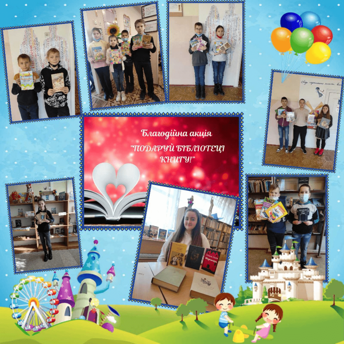 Започаткувала цей День засновниця сайту дитячої книги американка Еммі Бродмур. Якось один із її трьох синів здивувався, чому в календарі немає дня, призначеного для дарування книжок один одному. Так завдяки дитячій цікавості зародилася ініціатива. Еммі підтримали родичі, знайомі, колеги, друзі з соціальних мереж. Ідея дарування книжок перетворилась на всесвітню ініціативу, до якої долучилися і здобувачі освіти МЗОШ №52, взявши участь у благодійній акції “Подаруй школі книгу”. Завдяки цій акції фонд бібліотеки поповнився дитячими енциклопедіями, довідниками, казками і фантастичними пригодами. Адміністрація школи висловлює вдячність усім за подаровані книги, за приємні емоції, за прихильність до бібліотеки, за добру справу.