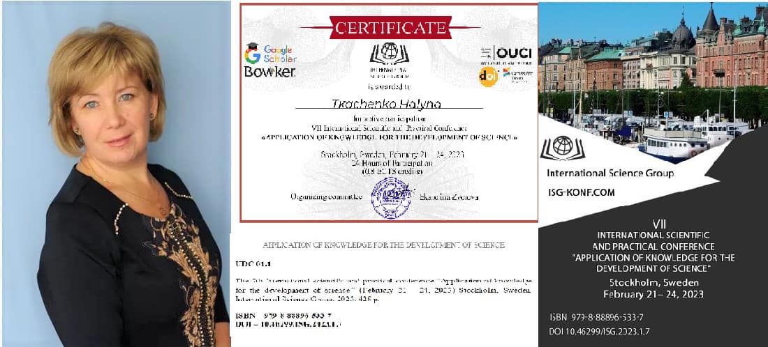 21 лютого 2023 року в Стокгольмі, Швеція відбулася VІІ Міжнародна науково-практична конференція «Application of knowledge for the development of science», на якій представлено досвід Миколаївської загальноосвітньої школи І-ІІІ ступенів №57 імені Т.Г.Шевченка. В секції «PEDAGOGICAL SCIENCES» представлено роботу закладу «ON THE FEATURES OF THE ORGANIZATION OF PRIMARY SCHOOL STUDENTS’ EDUCATION UNDER THE EXPERIMENTAL PROGRAM “INTELLECT OF UKRAINE” IN WARTIME CONDITIONS».